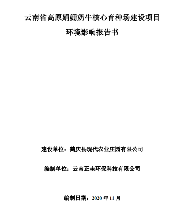 云南省高原娟珊奶牛核心育種場(chǎng)建設(shè)項(xiàng)目環(huán)境影響報(bào)告書(shū)