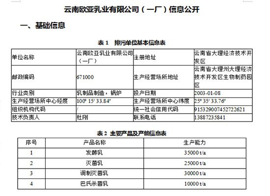 云南歐亞乳業(yè)有限公司(一廠)信息公開(kāi)