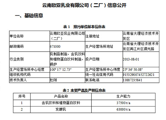 云南歐亞乳業(yè)有限公司(二廠)信息公開(kāi)