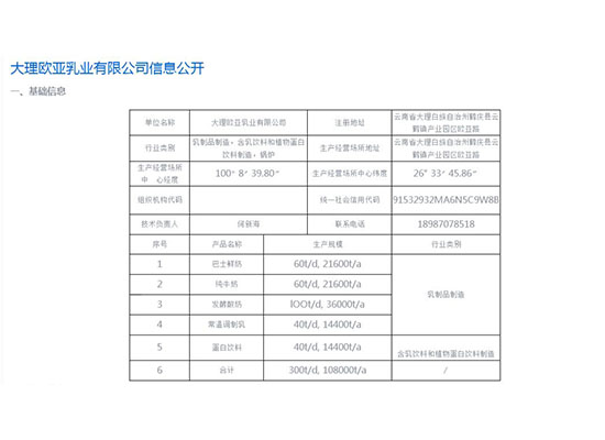 大理歐亞乳業(yè)有限公司信息公開(kāi)